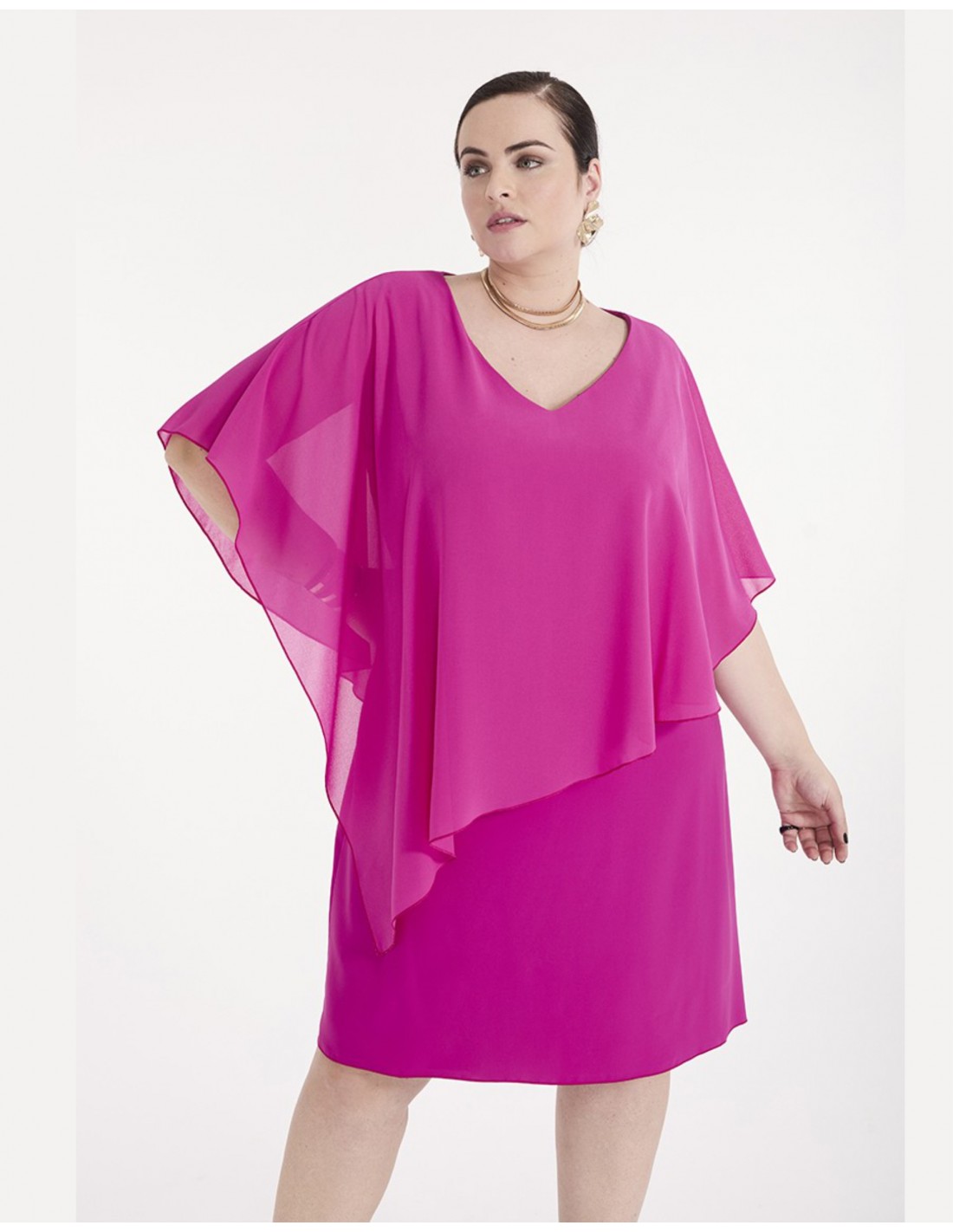 Vestido corto liso con pieza a modo de capa en delantero y espalda y escote en V.